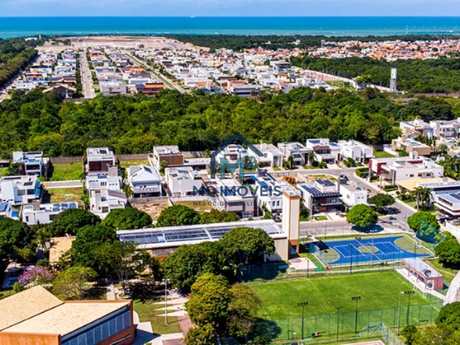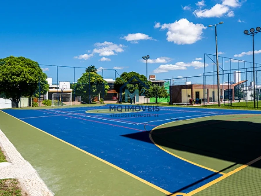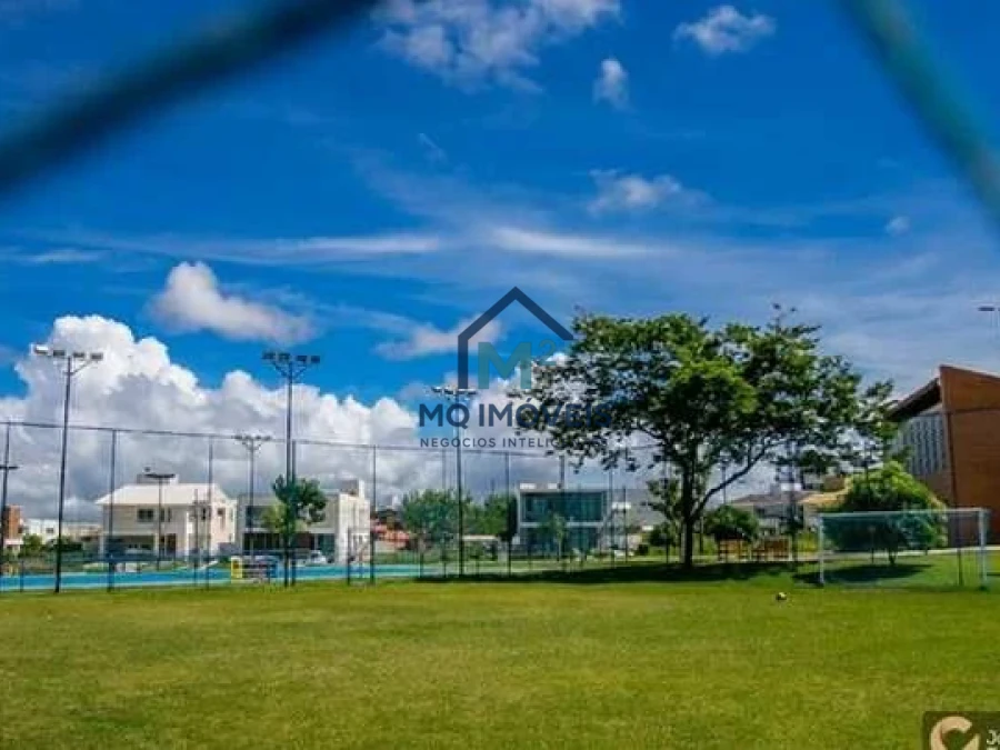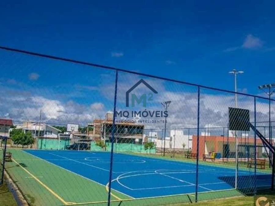 O condomínio conta com infraestrutura de lazer completa incluindo piscina e academia para os moradores. O empreendimento oferece segurança 24 horas em condomínio fechado com portaria controlada. O terreno aceita financiamento bancário facilitando a aquisição.